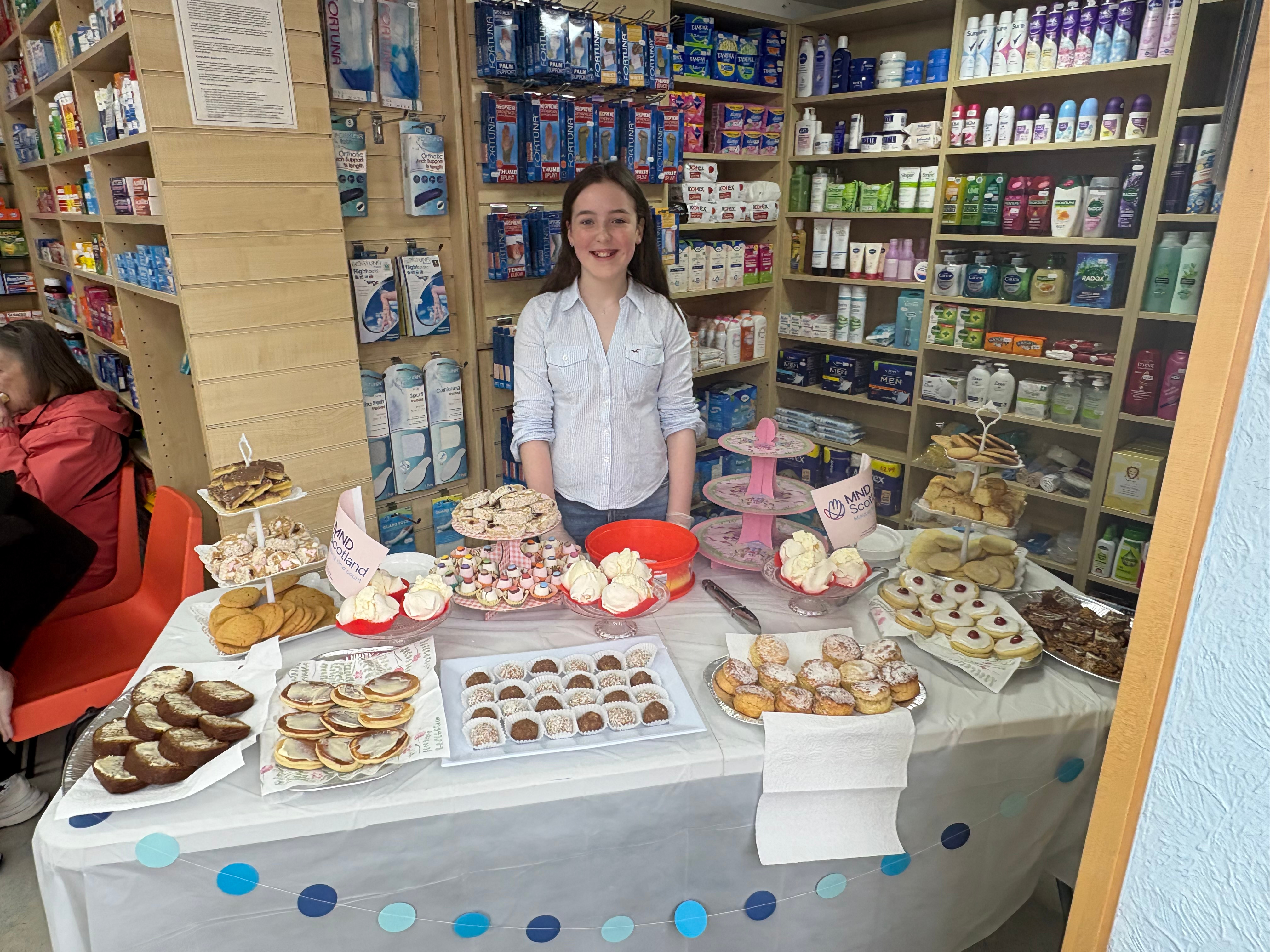 The pharmacy staff ran the coffee morning, with some of their children helping to serve cakes to those who came in.
