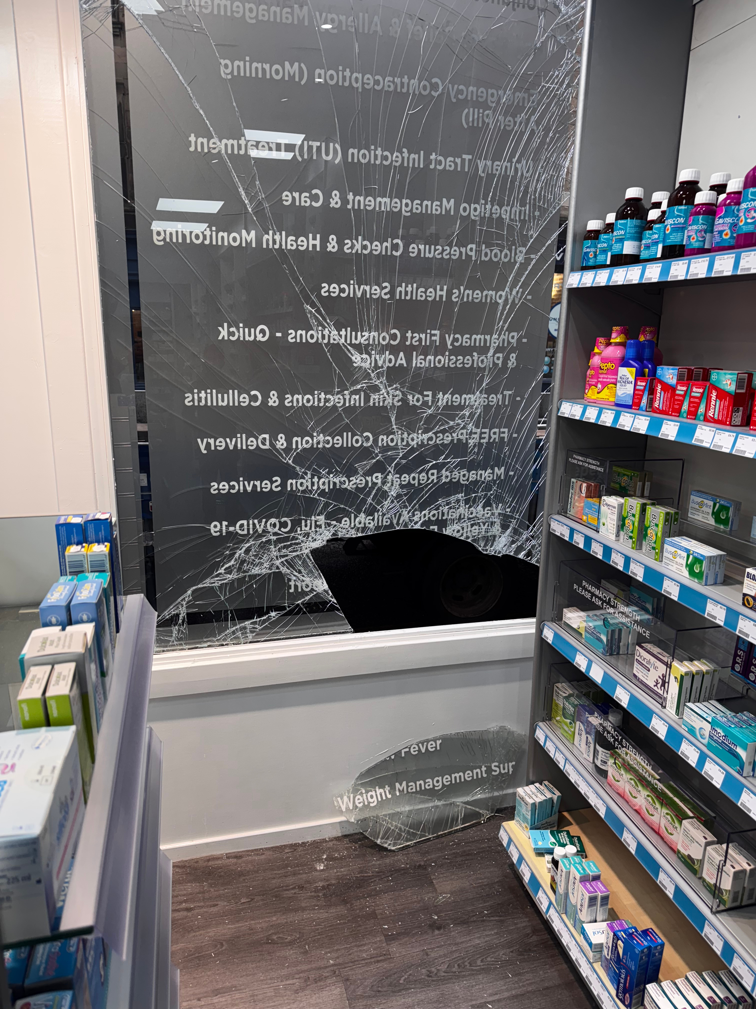 The window was repaired in the morning, and prescriptions were re-routed for collection from local GP practices to ensure patients did not go without essential medication.