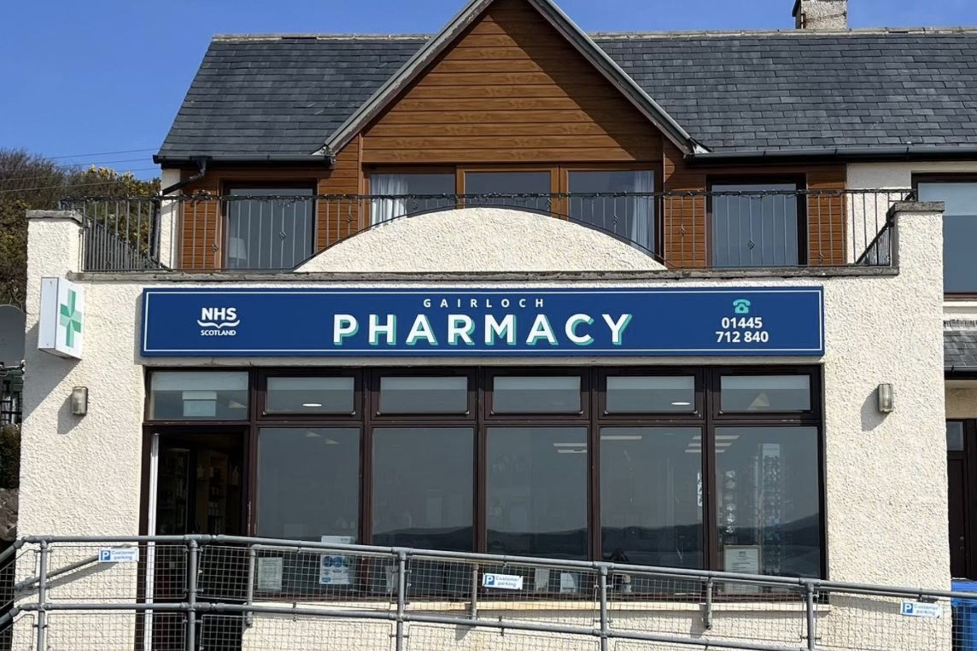 Nestled in the northwest Highlands of Scotland, in the scenic village of Gairloch, the pharmacy is located on a road that follows the loch around. A beach lies a few steps away.