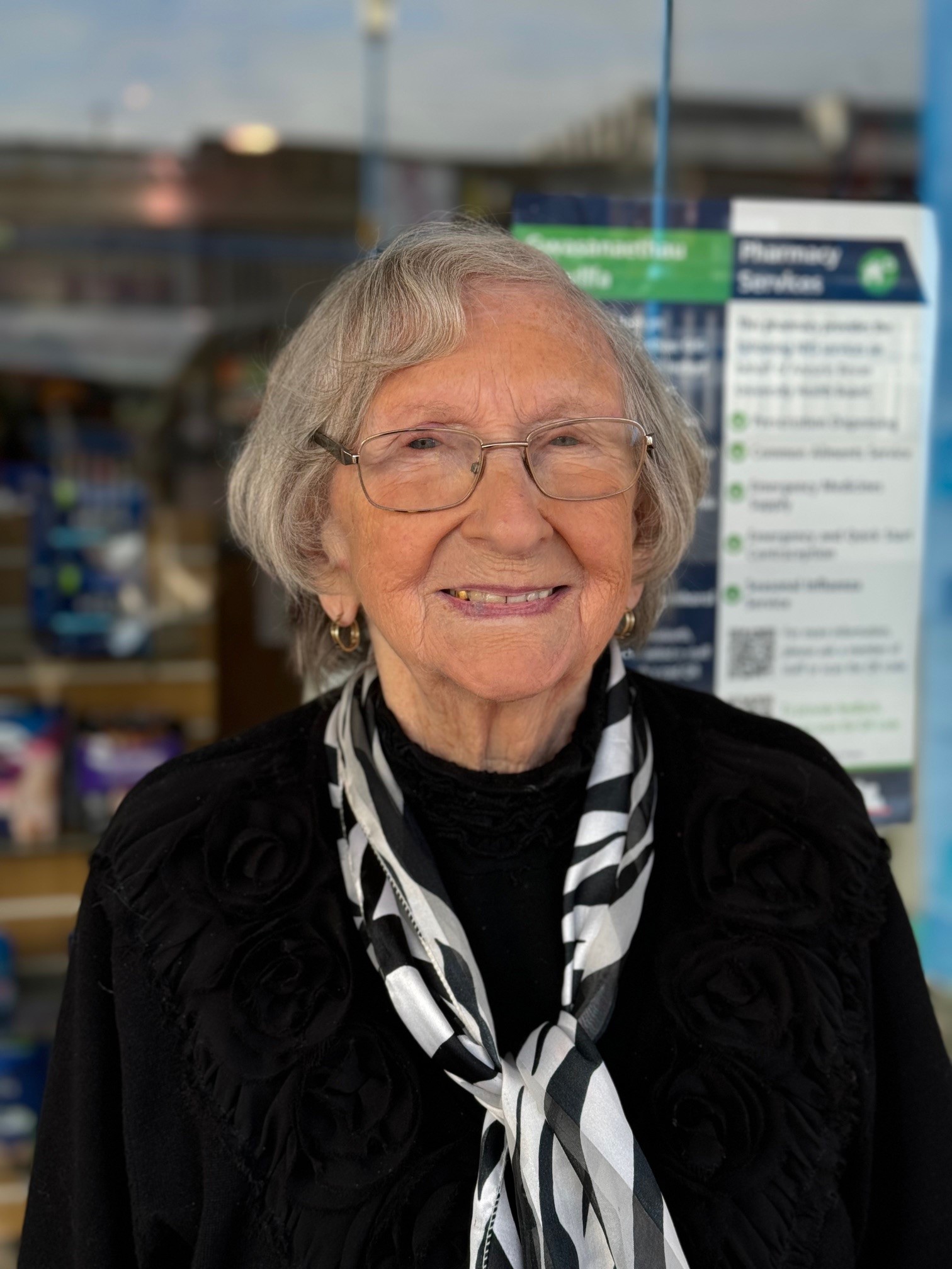 Betty Pritchard started working in 1951 at the (now closed) Crindau Chemist where she spent 14 years. In 1965 she moved to Watkin-Davies Pharmacy in Bettws, Newport, where she has spent the last 59 years managing and dispensing.