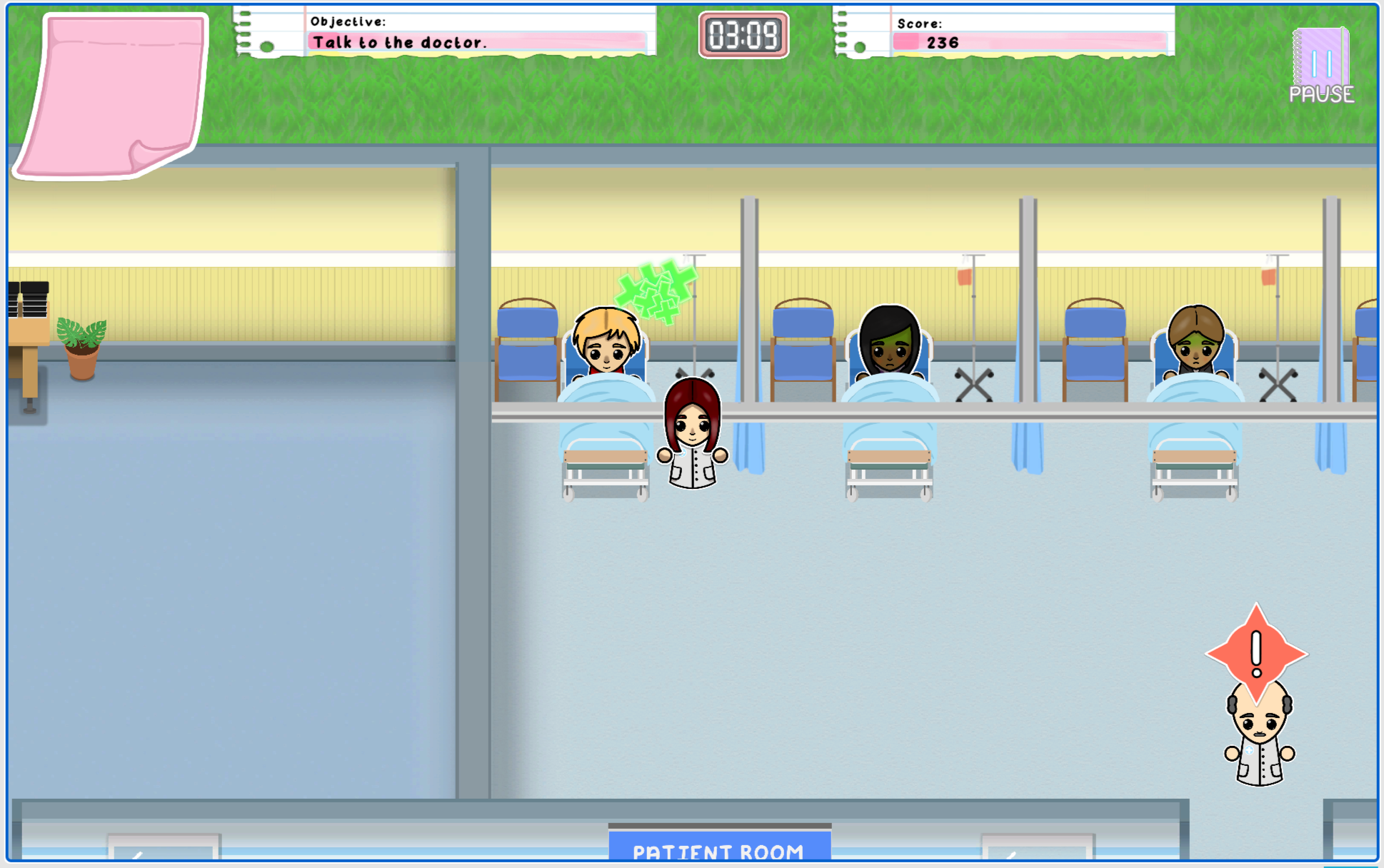 In the Ward level, if you ask the wrong question to the doctor – such as asking for gossip or if they want to go out after work – you lose points and even after picking up the correct prescription, sometimes you need to check a patient’s blood test to see if they allergic to one of the six pills available.