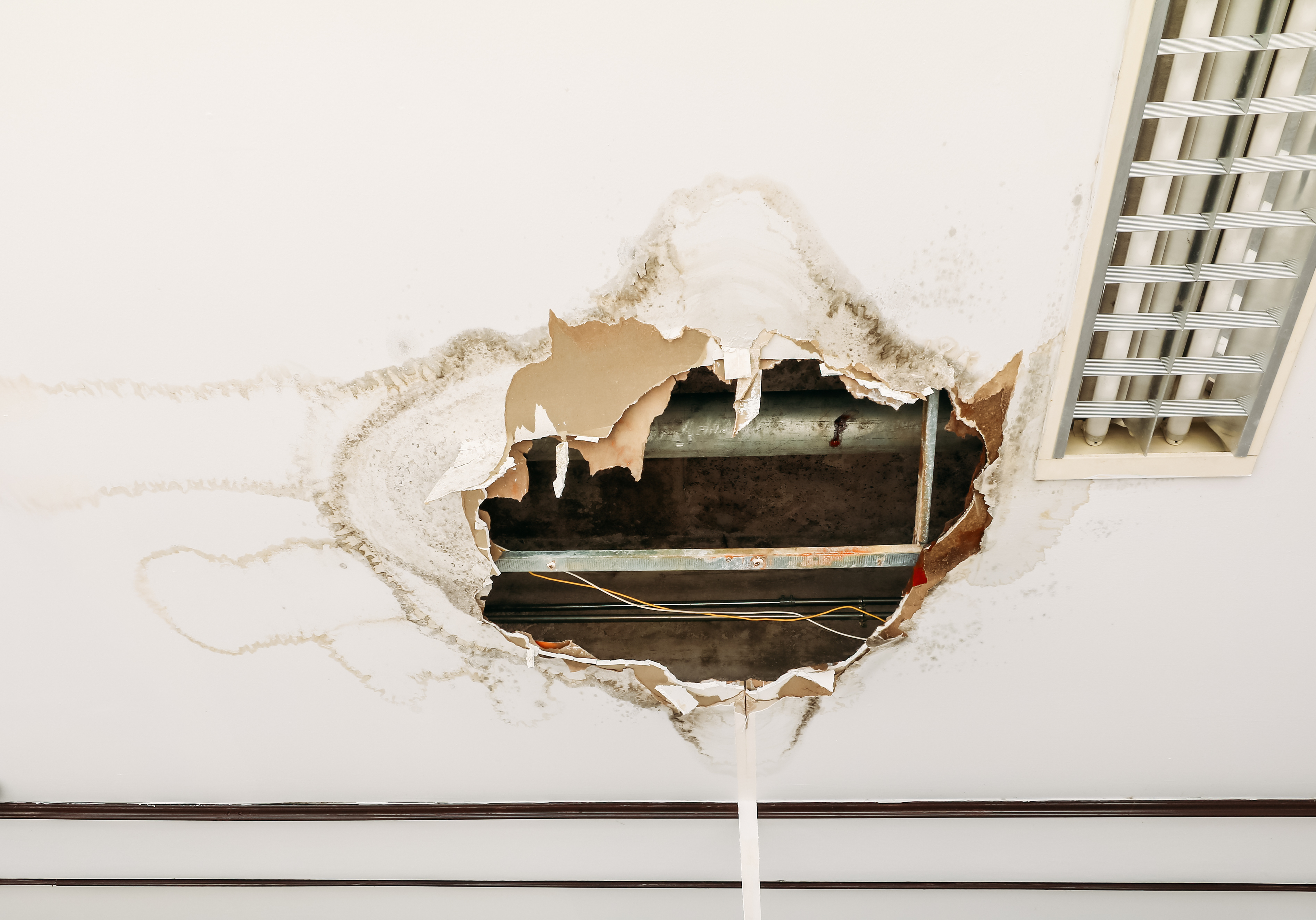 The ceiling fell on my patients. They were doing work on the flats above the pharmacy. I had two patients in the consult room with the pharmacist getting some vaccines. I was working in the dispensary alone at the time.